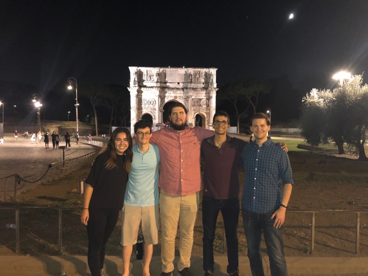 During the summer of 2019, having just finished my first year of my PhD program, I wanted to expand my horizons and my network. I applied and received a travel grant through the Molecular Software Science Institute (MolSSI) to attend the Open Molecular Science Cloud workshop held in Perugia and Rome, Italy. MolSSI is an institute based in Blacksburg, Virginia, that “serves as a nexus for science, education, and cooperation serving the worldwide community of computational molecular scientists – a broad field including of biomolecular simulation, quantum chemistry, and materials science” (https://molssi.org/about/). The participants from the United States included three other grant awardees, a representative from MolSSI, Daniel Smith (a fellow College of Charleston graduate I should mention!), and myself. The other grant awardees included (as listed in the picture below): Jessica Maat from University of California, Irvine, Stefan Seritan from Stanford University, and Vinicius Cruizerio from University of California, San Diego.